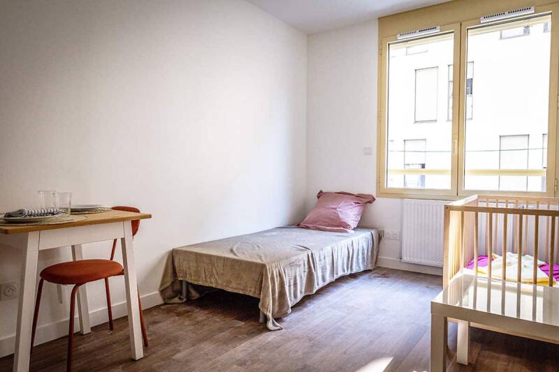 Services : studios avec salle d’eau / cuisines collectives / salles de jeux et de convivialité / micro-crèche / jardin / espace d’accueil parents-enfants / accompagnement social